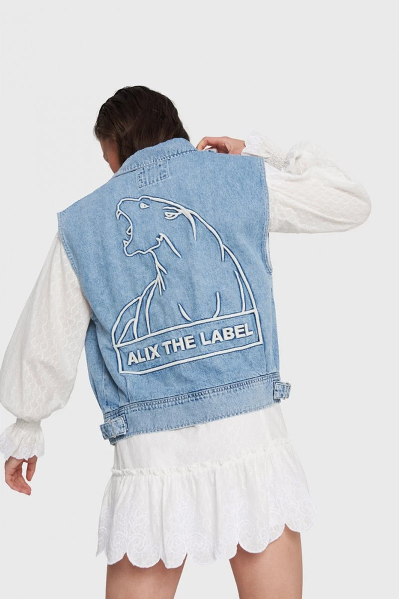 Alix The Label Embroidered Denim Waistcoat
