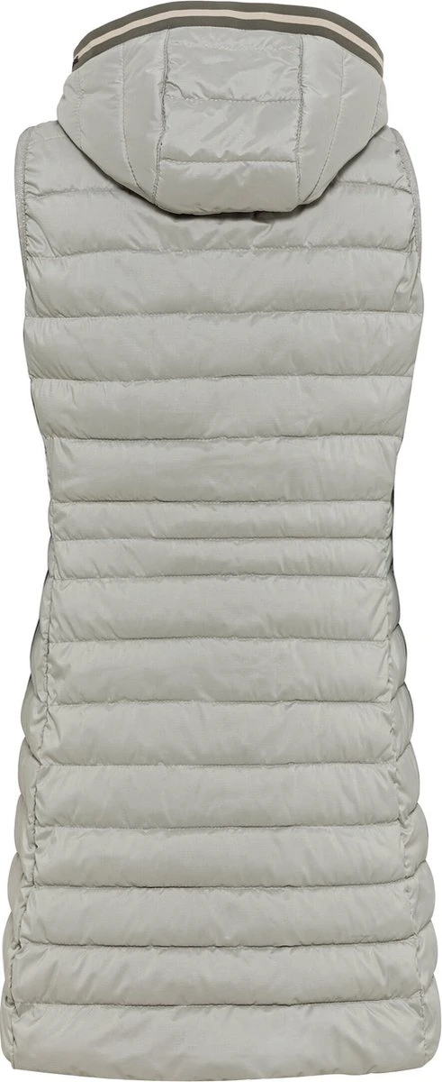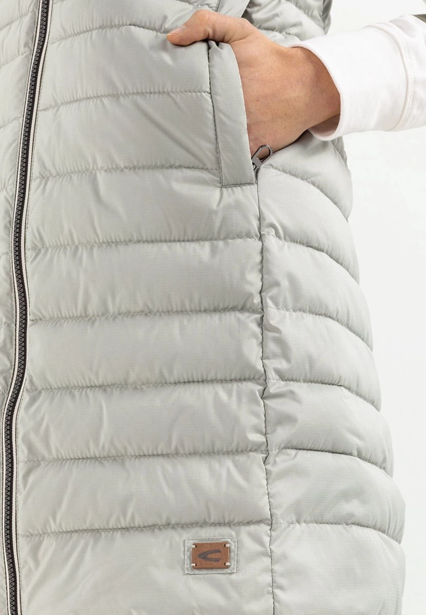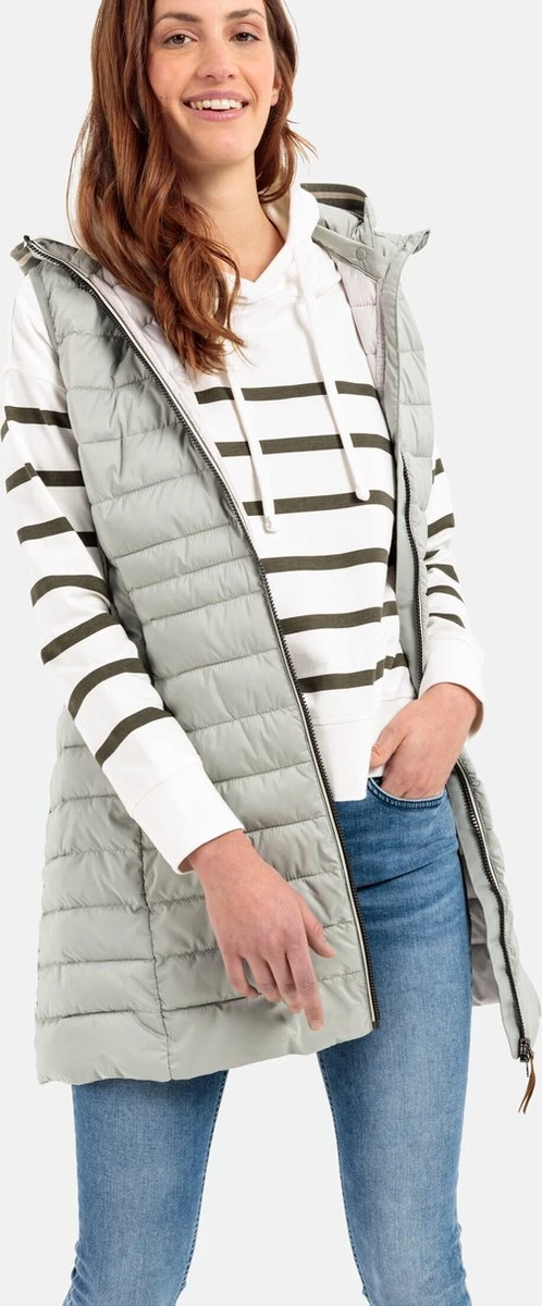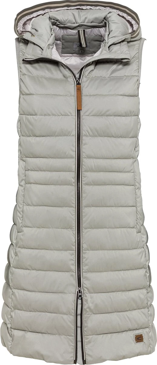 Dit behaaglijke vest van camel active van speciale stof houdt je warm in het natte en koude overgangsseizoen. De buitenkant is gemaakt van waterafstotend en winddicht materiaal, terwijl de binnenkant gevoerd is met donsvrije vulling. De contrasterende band op de afneembare capuchon met elastiek geeft het lang gesneden vest een moderne uitstraling. De tailleomvang kan individueel worden aangepast met de geïntegreerde band.
