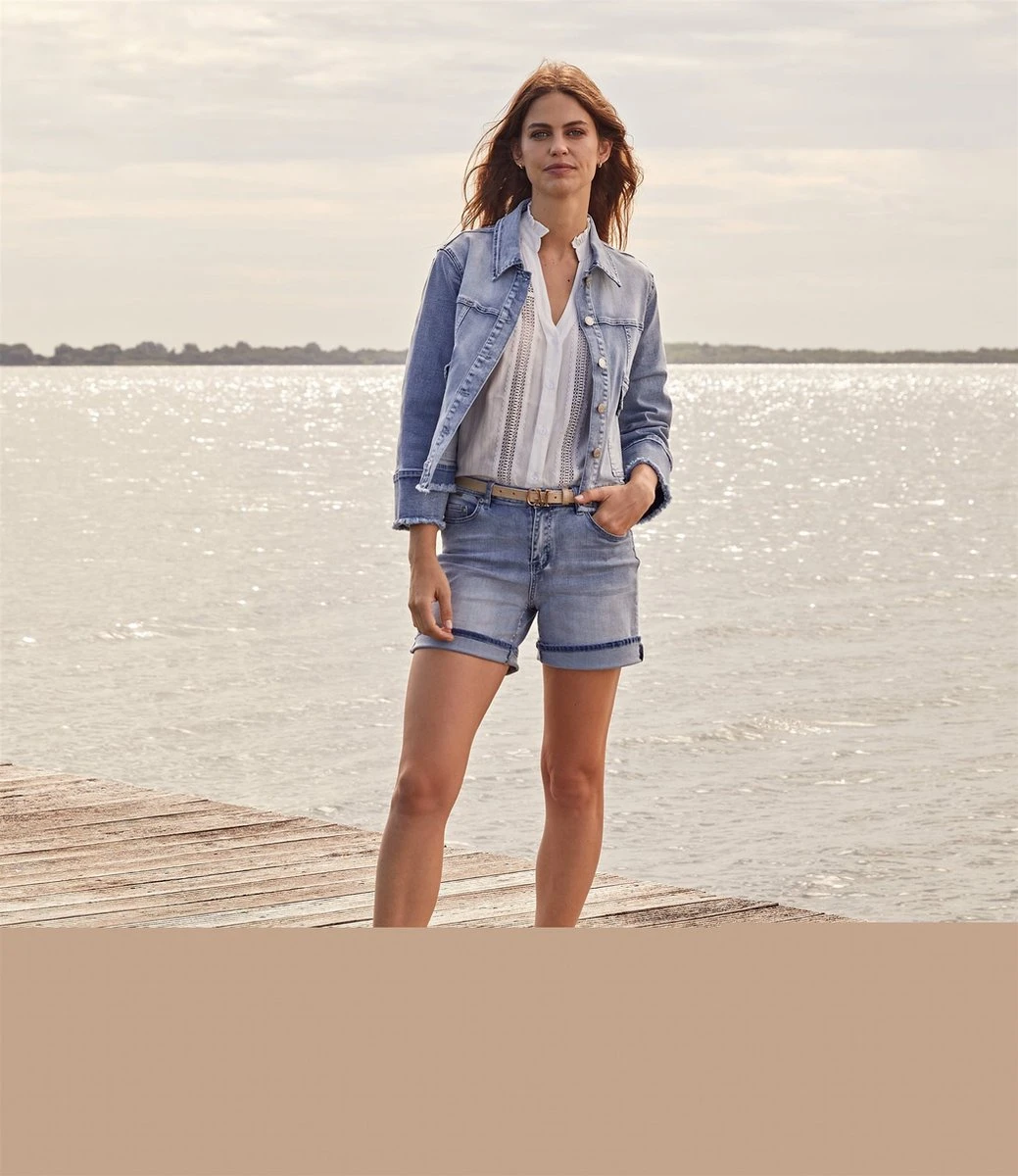 Elke voorjaarsgarderobe heeft ten minste één denim jacket nodig. Het Nudara jacket is nieuw model spijkerjack met een klassieke kraag grote zakken een 3/4 mouw met rafels ook aan de boord. Een knoopsluiting en de jacket heeft een lichte wassing.
