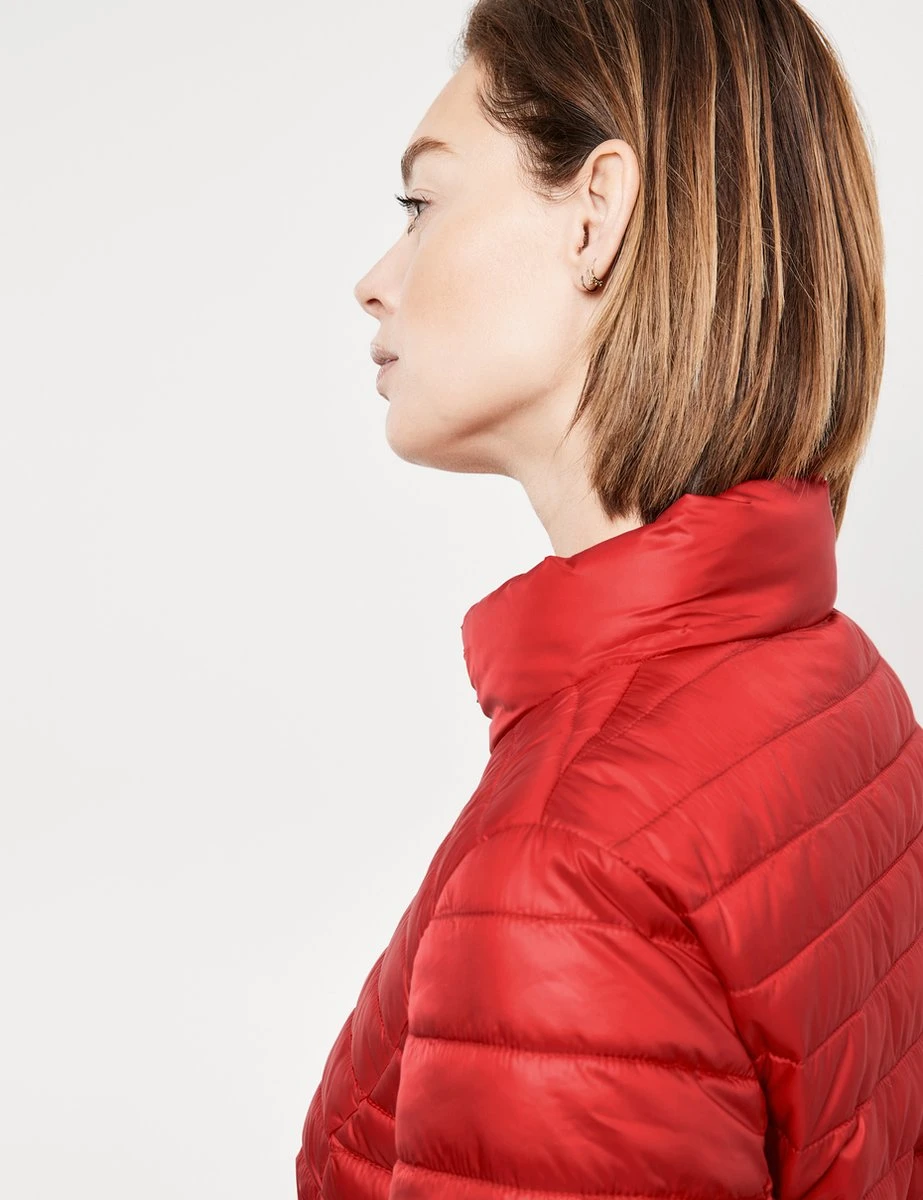 Maakt uw vrijetijds-outfit compleet en mag in geen garderobe ontbreken: de getailleerde jas met een losse pasvorm is het ideale item, als u buiten bent. Ook op koelere dagen bent u dankzij de warme voering en de opstaande kraag modieus gekleed. Het materiaal glanst fijn en maakt de gewatteerde jas een elegant en tegelijk trendy kledingstuk. Schuine zakken maken het design af.