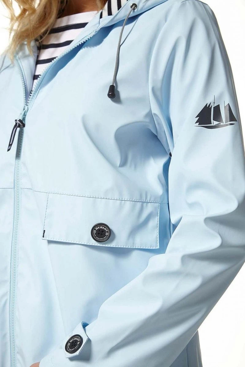 Modieuze lange regenjas (ciré) met lange rits en vaste kap100% polyurethaan
