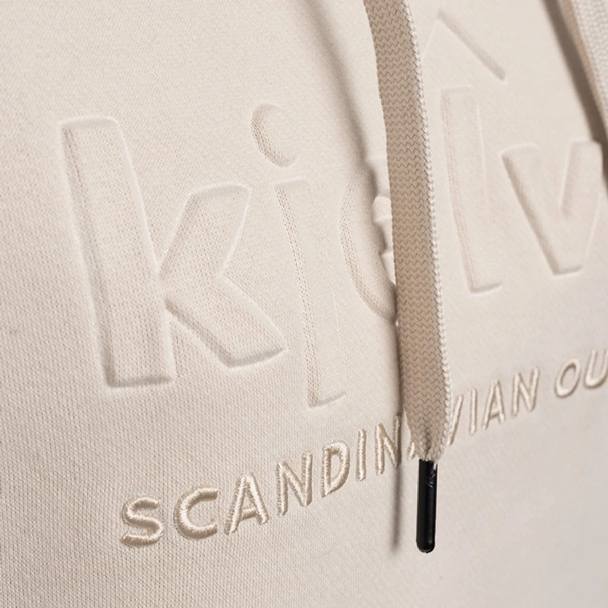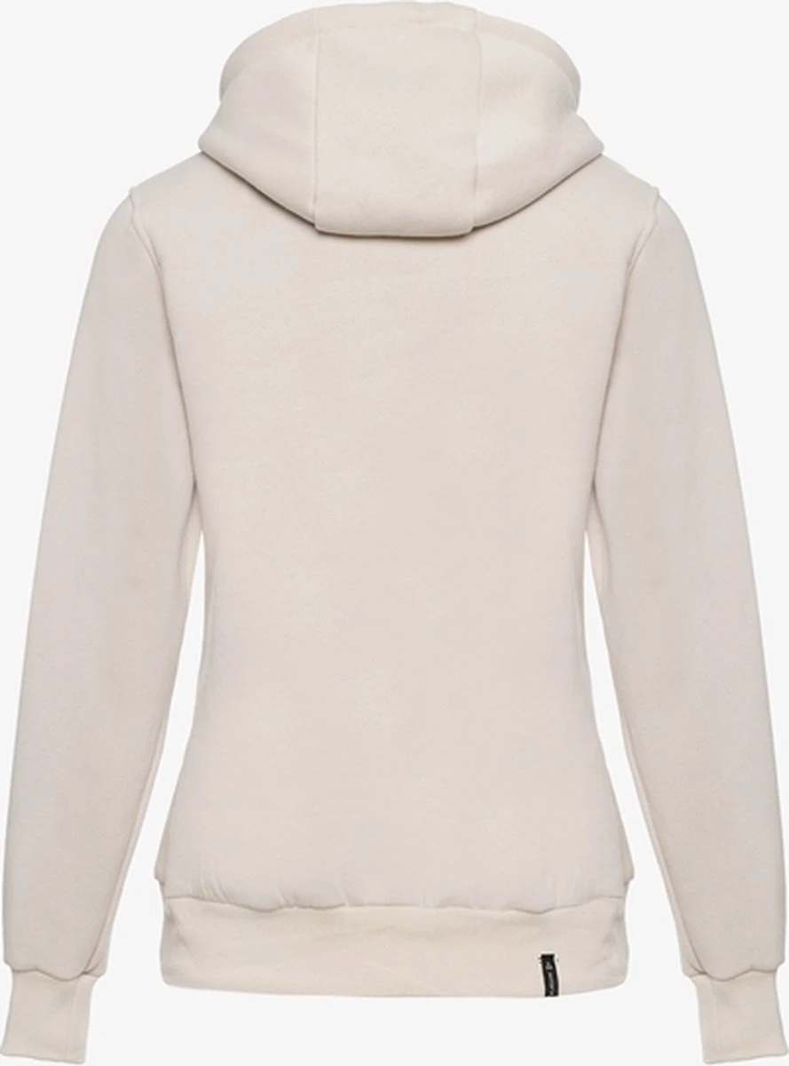 Beige dames hoodie van Kjelvik. Deze comfortabele hoodie is gemaakt van stretch materiaal. Voorzien van een capuchon met aantrekkoordjes, lange mouwen met elastische boorden en een buidelzak. De stof is ademend en sneldrogend. De hoodie is voorzien van een Kjelvik merklogo op de voorzijde. Gemaakt van 65% polyester en 35% katoen.