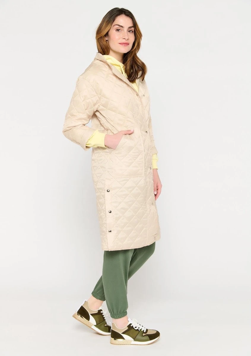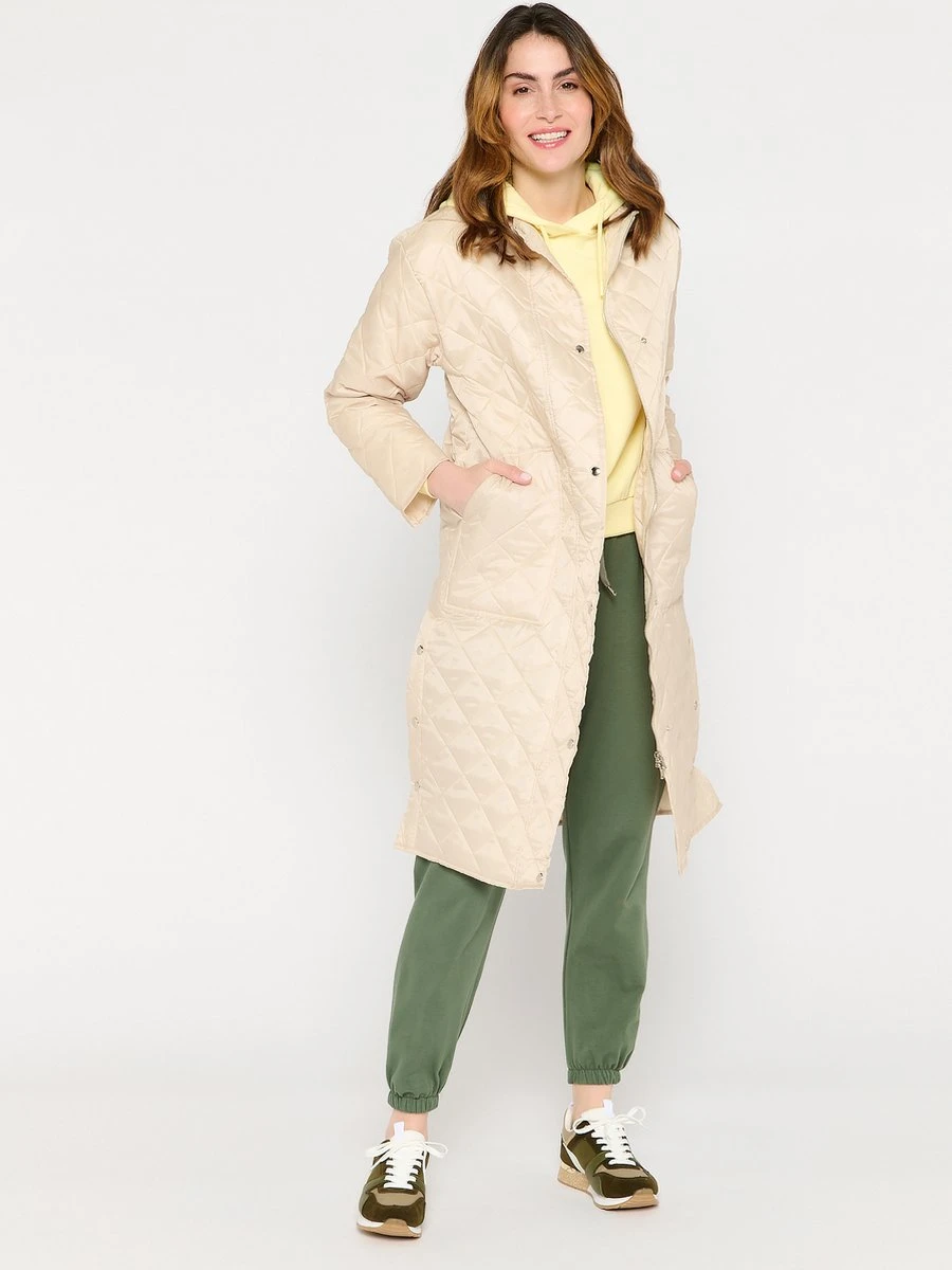 LOLALIZA Lange Gewatteerde Jas Met Blok Motief – Beige – Maat M
