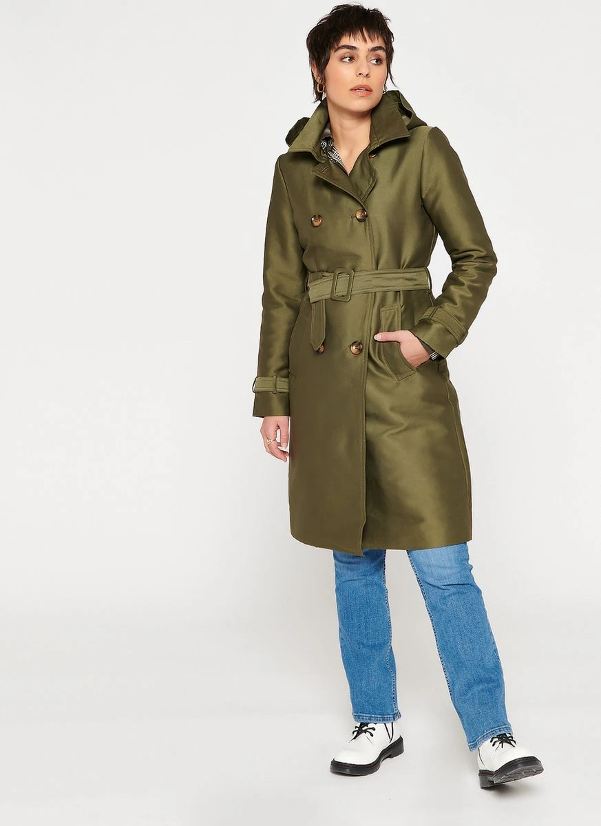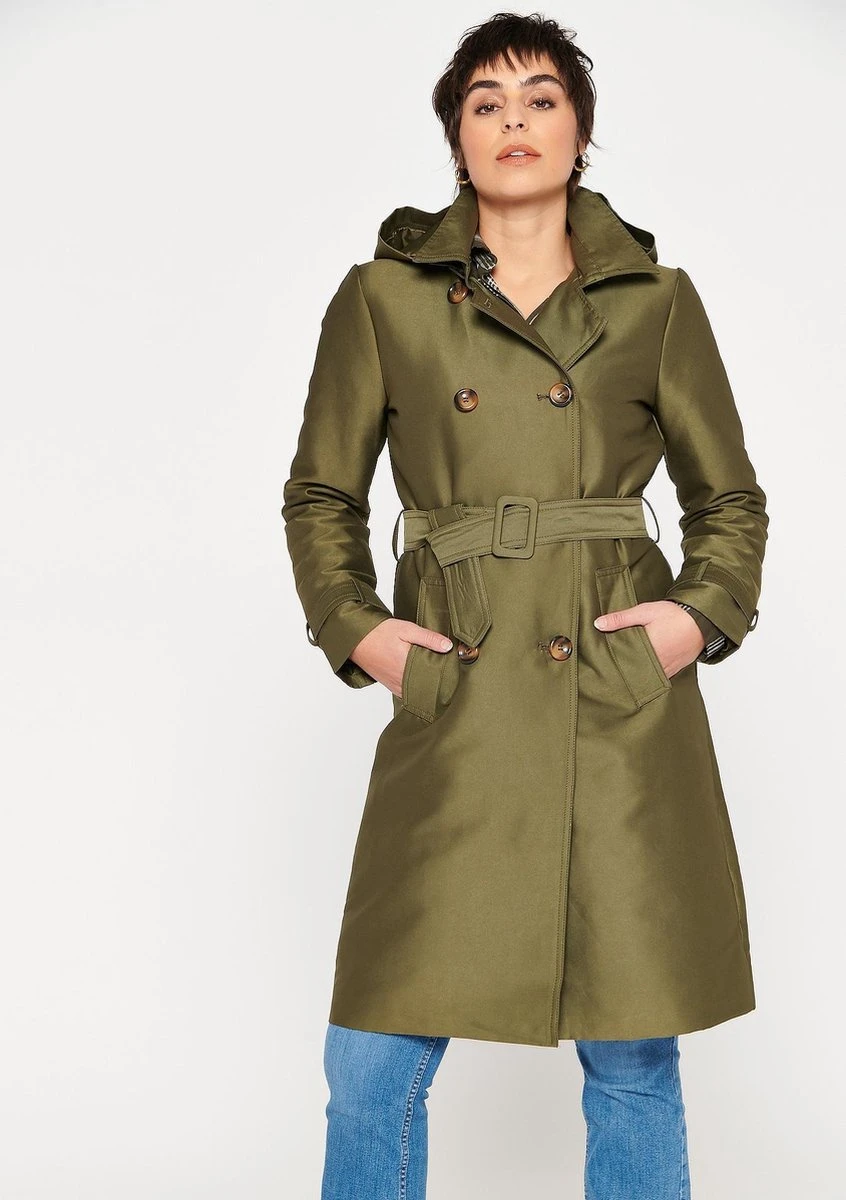 LOLALIZA Lange Trench Met Ceintuur En Capuchon – Khaki – Maat 44