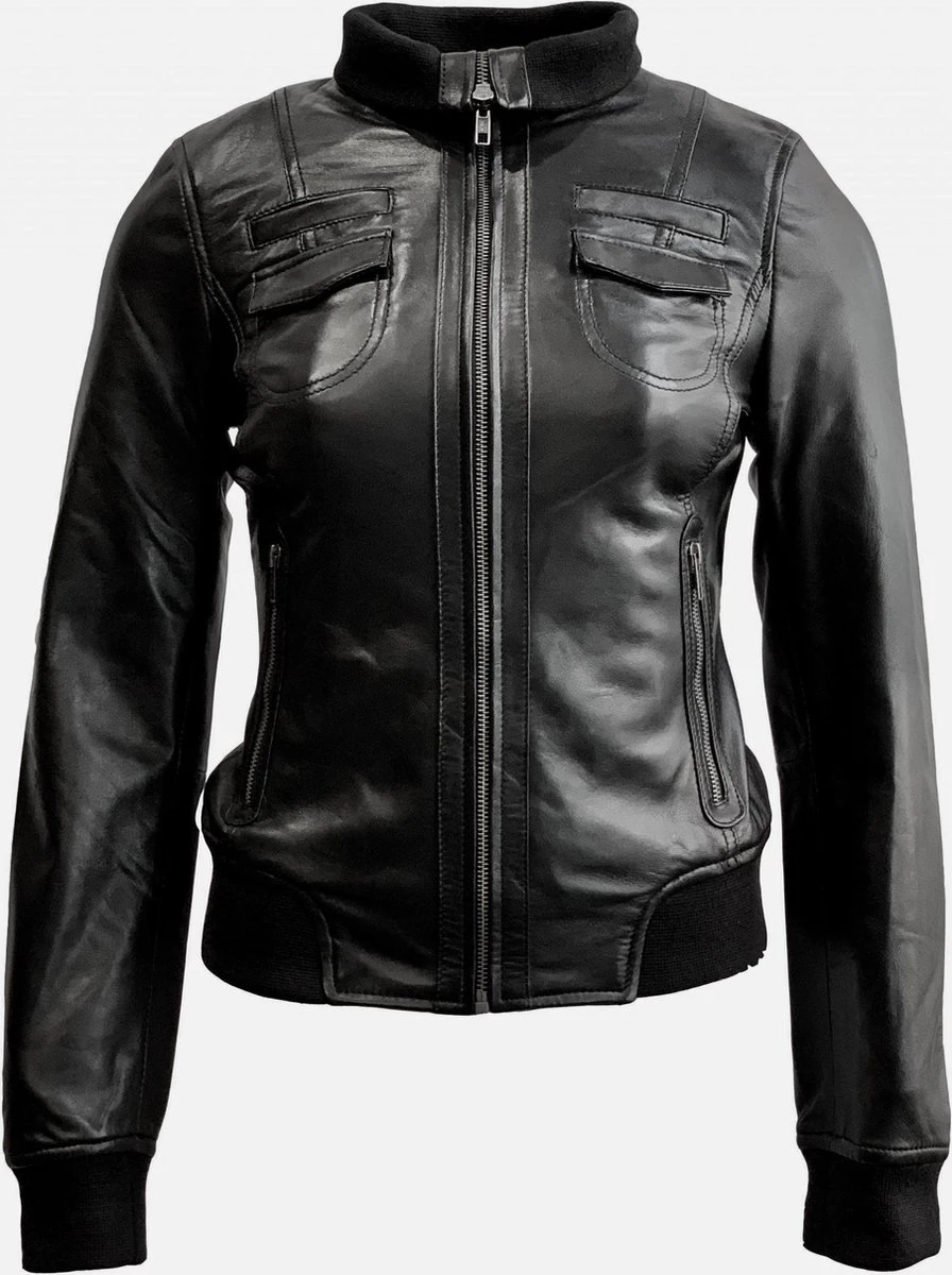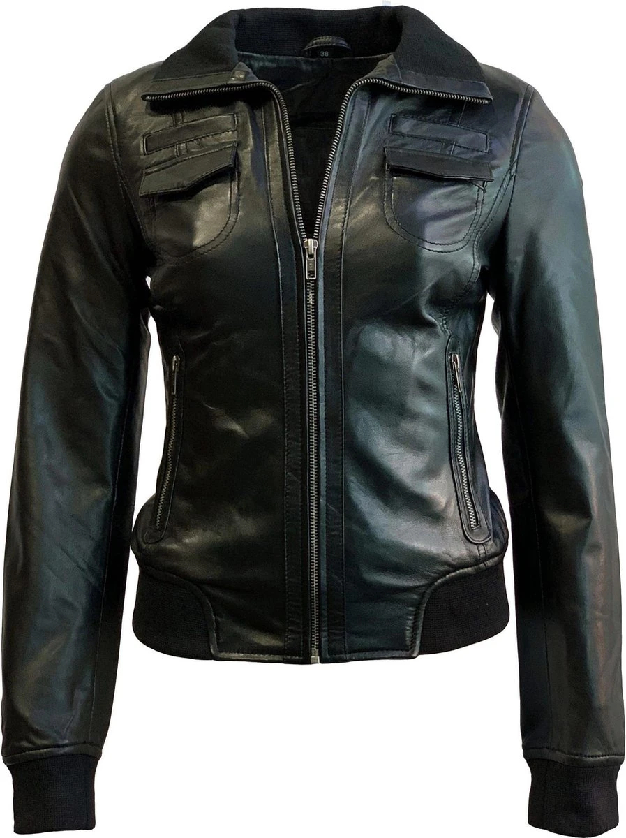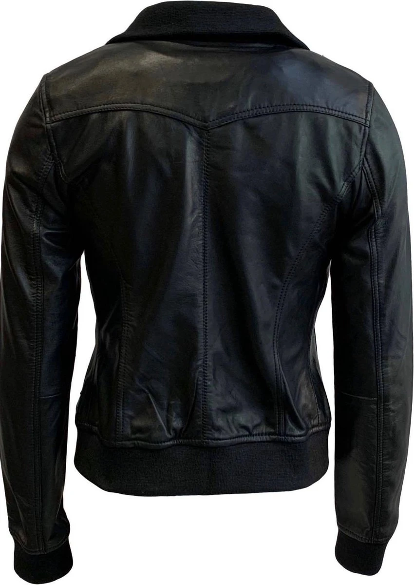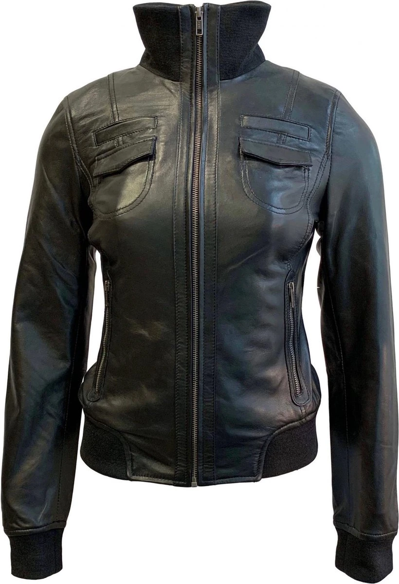 Merkloos Leren Bomber Dames Jas Zwart- Bomberdina – 38