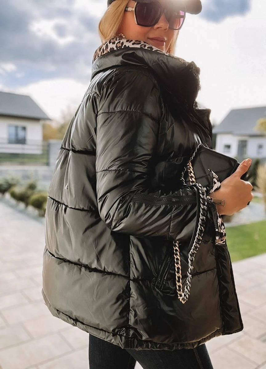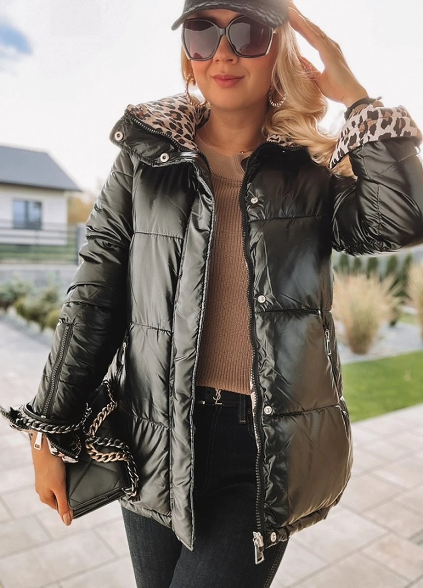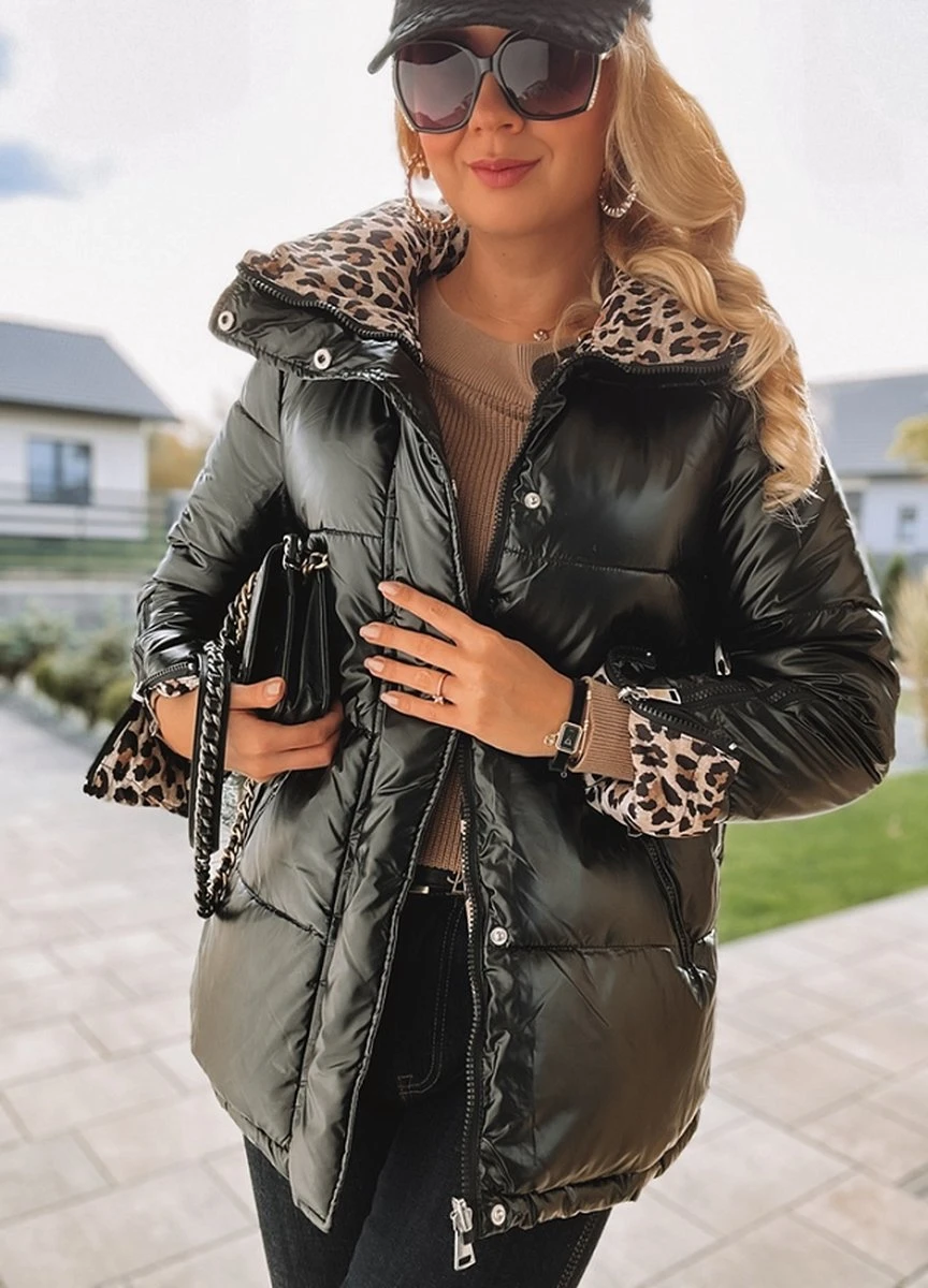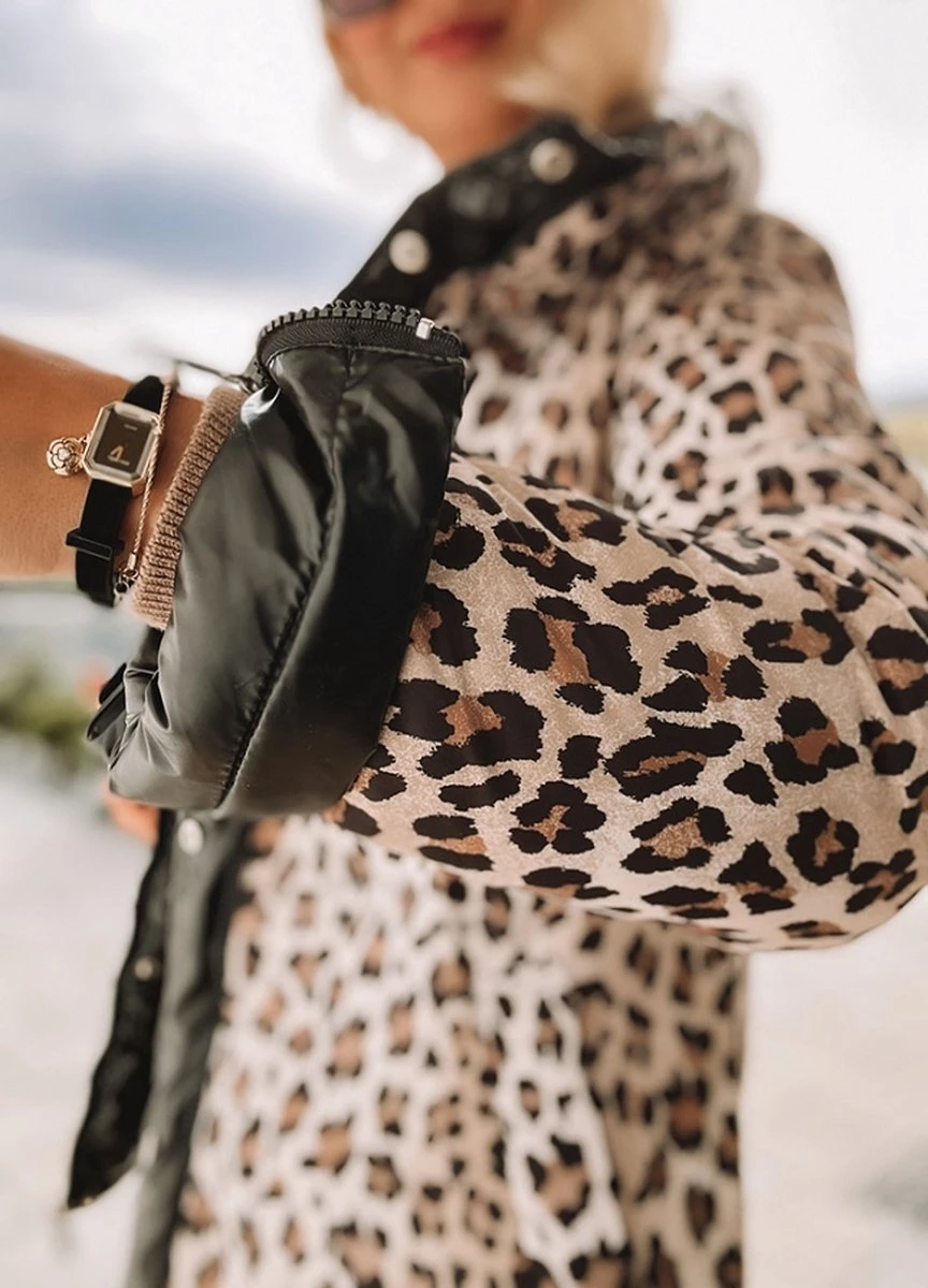 Waterdichtjas 2in1 zwart of leupaardprint. Op zwarte kant zakken met ritsluiting op leupaard zakken zonder ritsluiting.