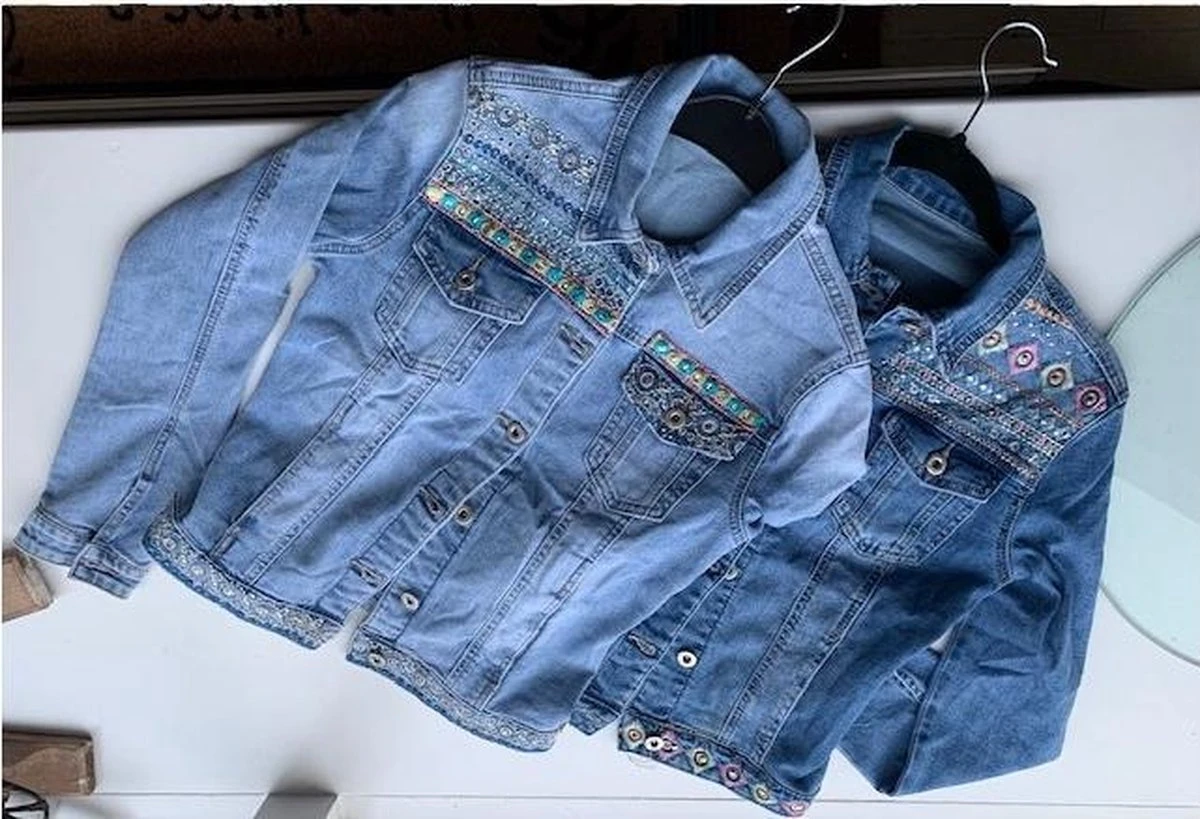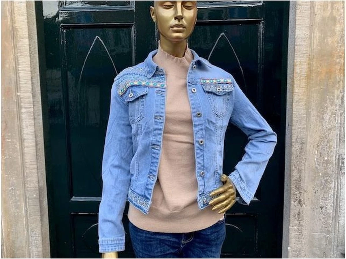 Het borduursel van de onderrand loopt aan de achterkant van het spijkerjasje door.