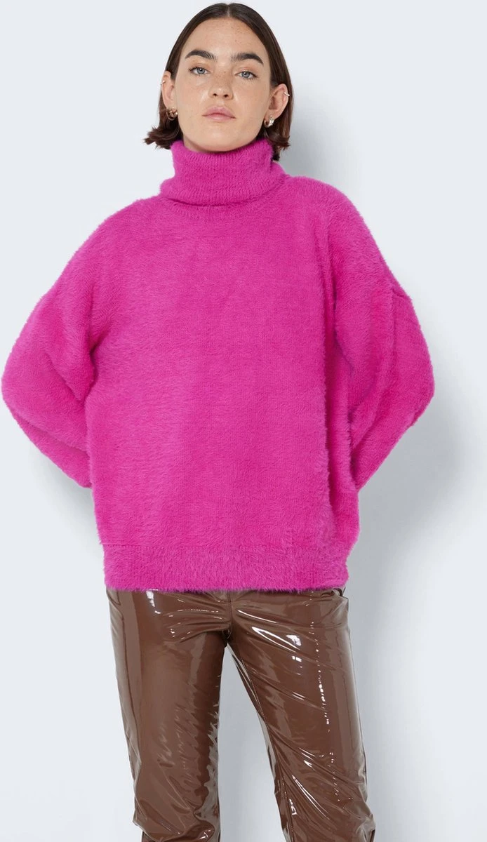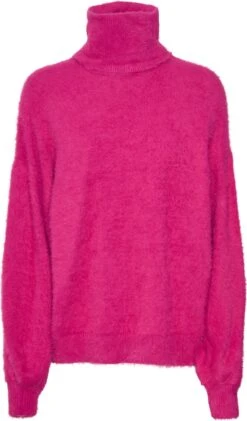 Trui van het merk Noisy May. De pullover met lange mouwen is roze en heeft kol. Daarnaast heeft dropped shoulders. Het artikel is gemaakt van 51% nylon en 49% acryl.