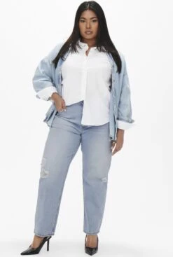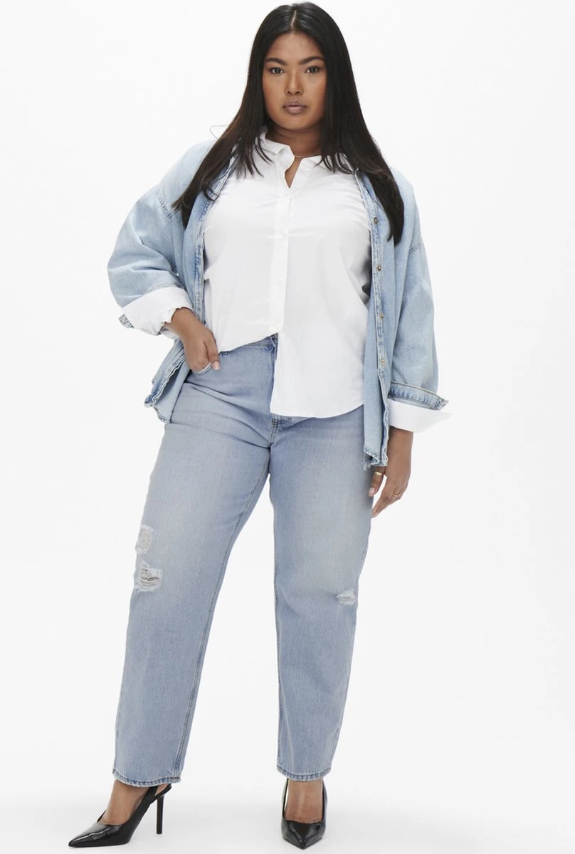 ONLY jeans CARROBYN 32 inch, Maat 46, met een advies prijs van: 49.99. Wat een super stoere jeans van ONLY Carmakoma. Het is een wat wijder vallend model om de benen. Hij heeft op veel plekken destroyed effect, op de tailleband, het boven been en op de knie. De jeans heeft een zomerse lichte
