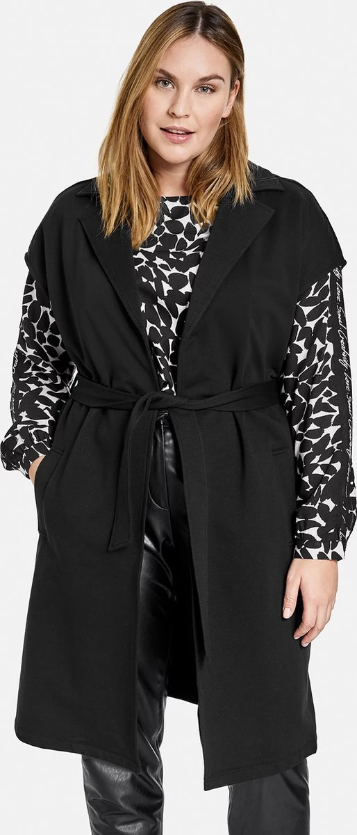 Het lange mouwloze vest biedt de beste performance! In dit modieuze item met revers en bindband ziet u er dankzij de mooie lengte altijd schitterend uit. Bovendien zit de zachte sweatstof heel comfortabel. Creëer een easy look met een sweatshirt en een wijde broek.