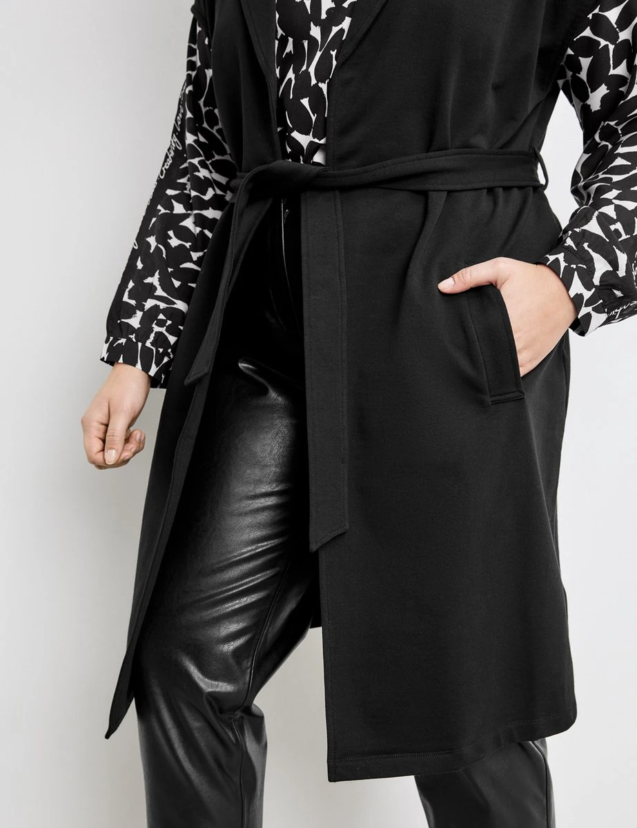 SAMOON Dames Lange Bodywarmer Met Bindband Black-50
