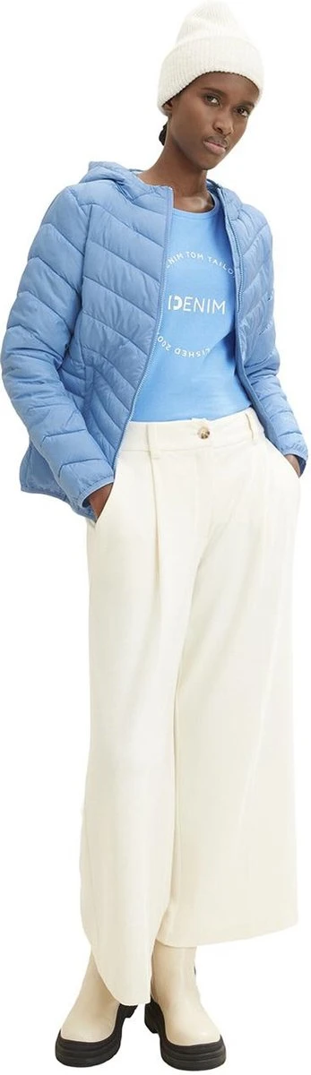 Tussenjas van Tom Tailor met doorgestikte naden. Dit model heeft een capuchon en lange mouwen. De jas sluit met een rits en heeft twee steekzakken aan de voorkant. Machinewas 30°c fijne was, Niet bleken, Niet stomen, Niet strijken, Wasdroger lage stand