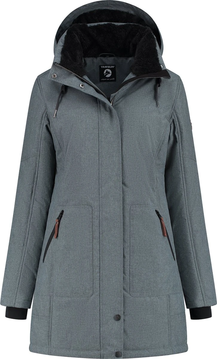 Jack Ylva is een lange gevoerde parka voor dames van Travelin’. De jas heeft een teddy voering op de opstaande kraag, de capuchon en op het rugpand. De beschermende overslag over de rits houdt de wind buiten en kan worden gesloten met drukknopen en klittenband. De jas heeft twee steekzakken met rits en een binnenzak. Verstelbare koordjes in de capuchon en onderaan de jas om de jas te dragen naar eigen voorkeur. De mouwen zijn voorzien van storm manchetten om de kou buiten te laten.