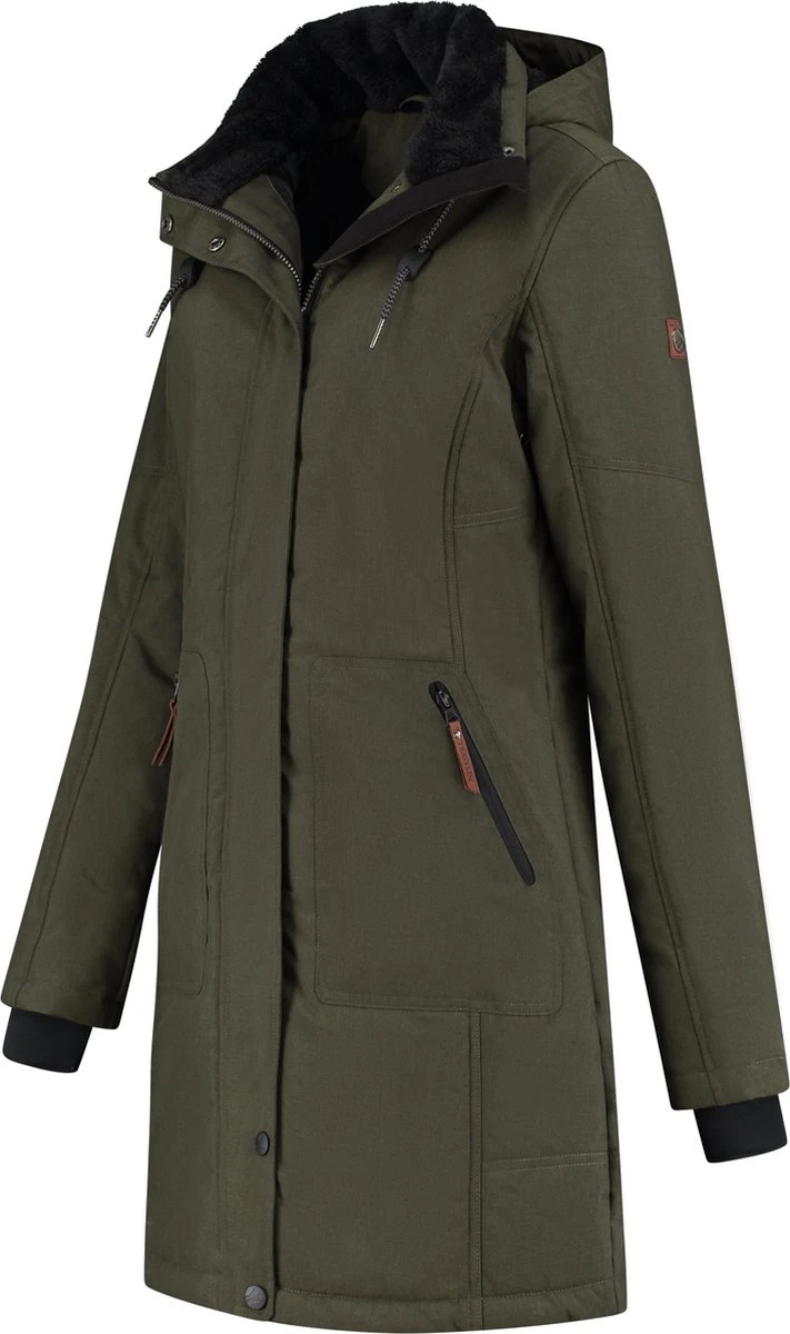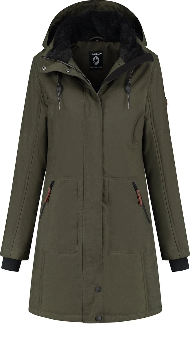 Jack Ylva is een lange gevoerde parka voor dames van Travelin’. De jas heeft een teddy voering op de opstaande kraag, de capuchon en op het rugpand. De beschermende overslag over de rits houdt de wind buiten en kan worden gesloten met drukknopen en klittenband. De jas heeft twee steekzakken met rits en een binnenzak. Verstelbare koordjes in de capuchon en onderaan de jas om de jas te dragen naar eigen voorkeur. De mouwen zijn voorzien van storm manchetten om de kou buiten te laten.