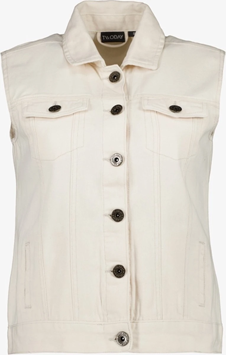 Dit super toffe dames gilet van TwoDay maakt jouw outfit compleet! Voorzien van een omgeslagen kraagje, knoopjes aan de voorzijde en twee borstzakjes. De gilet is mouwloos en gemaakt van een stevige stof. Gemaakt van 100% katoen.
