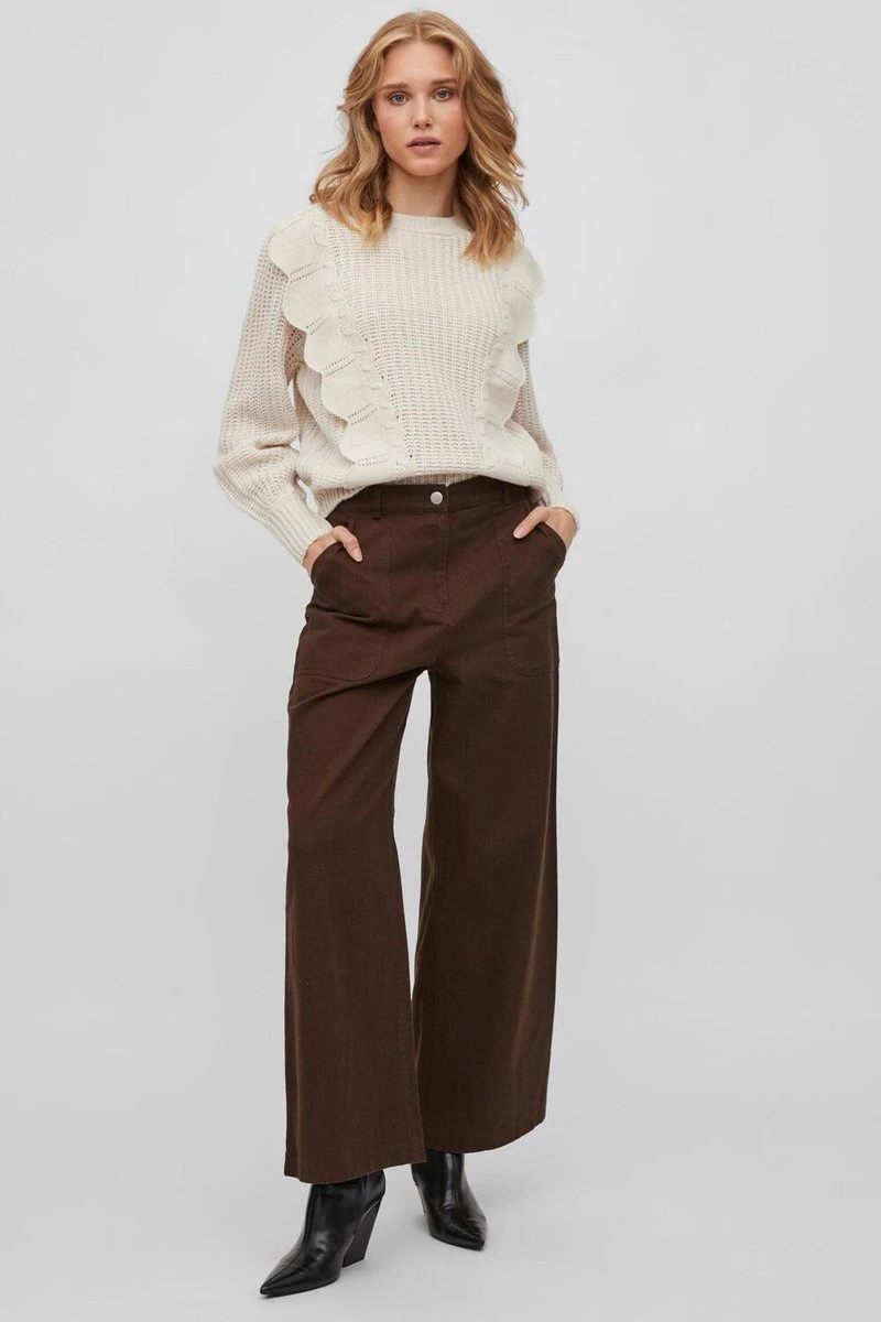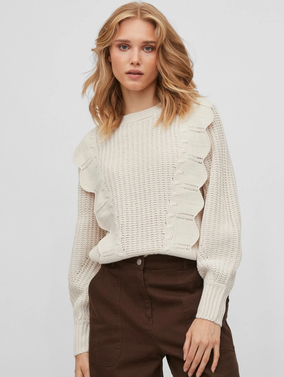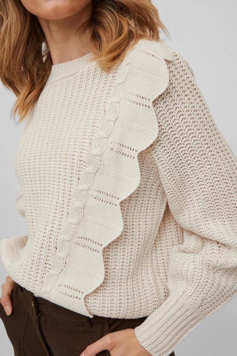 VILA VINORILA NEW L/S FLOUNCE KNIT TOP Dames Trui – Maat L