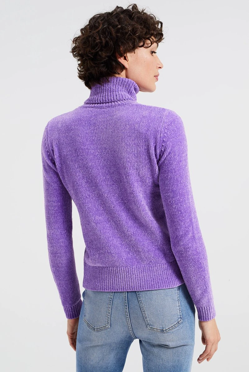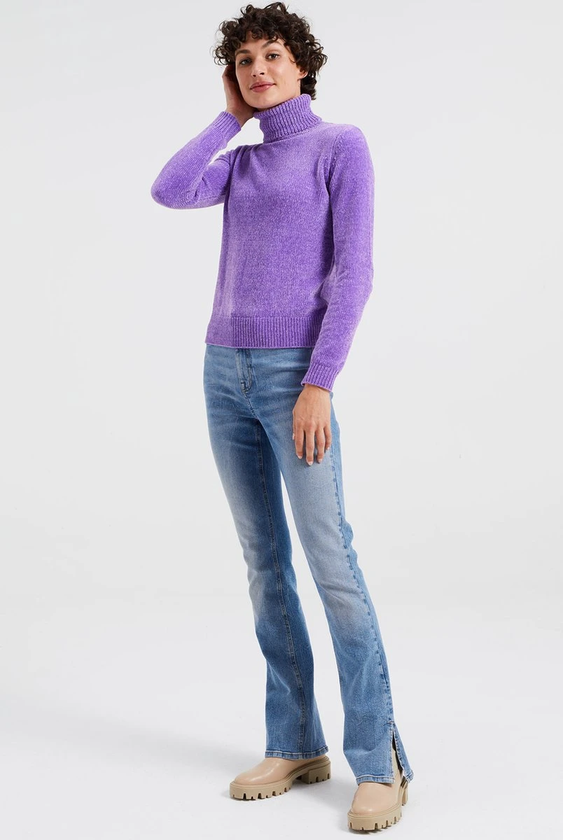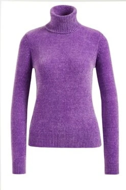 Een regular fit trui van gebreide kwaliteit met een velvet look. Het model heeft een col en lange mouwen.