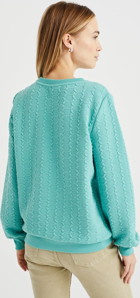 Een regular fit sweater van jersey kwaliteit met structuur en geribde boorden. Het model heeft een ronde hals en lange mouwen.