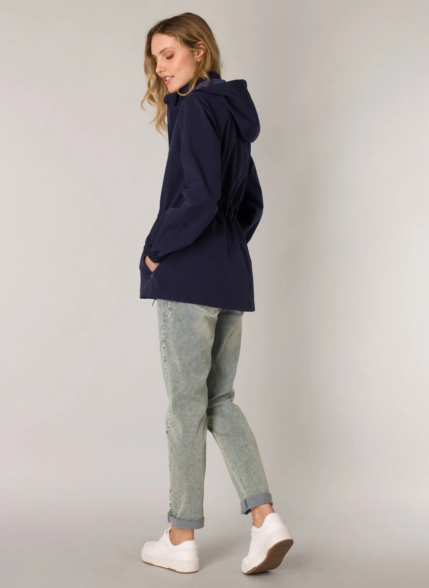 Softshell tussendoorjas van Yest. Deze jas heeft een 2-way zipper, zakken en een capuchon die losgeritst kan worden. Verder is de jas winddicht en waterafstotend en heeft het een zachte binnenkant.Binnen verborgen in de taille een koordje om de jas te tailleren.
