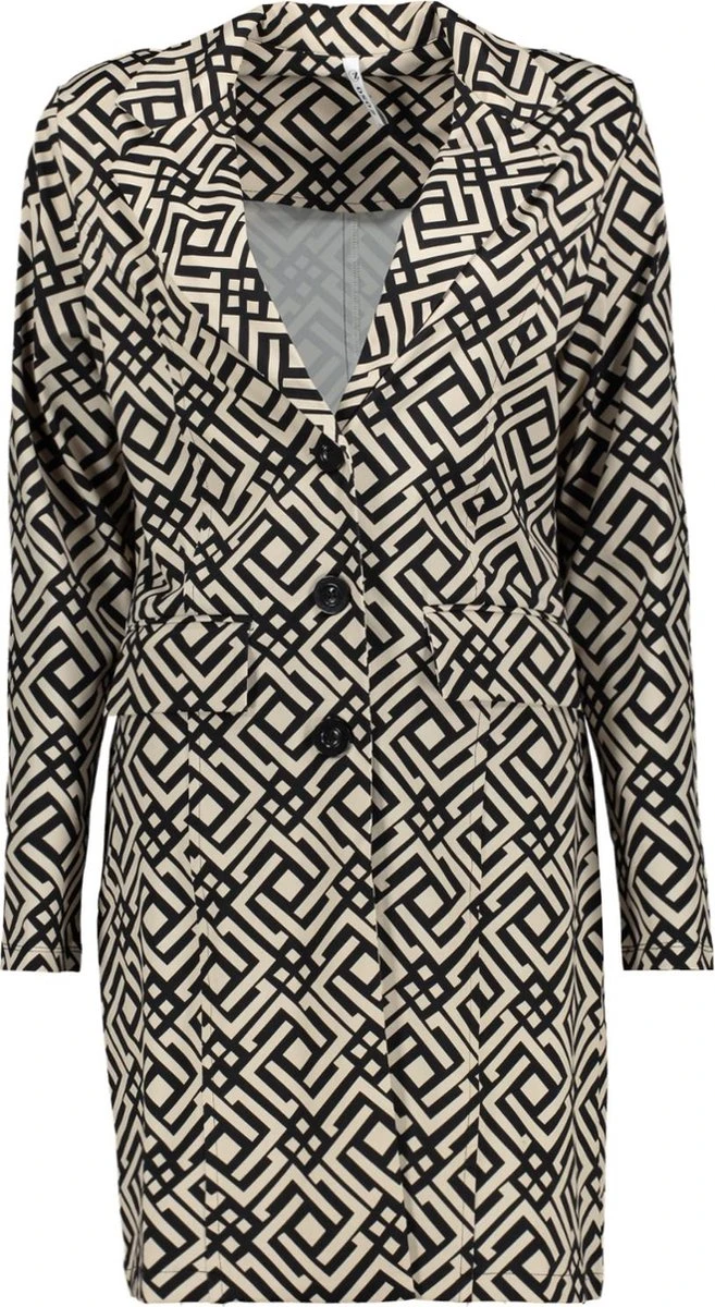Blazer van Zoso uitgevoerd in travelstof. Dit lange model met reverskraag en klepzakken sluit doormiddel van drie knopen. De blazer is voorzien van een sportief patroon. Lauw strijken max 110°c, Machinewas 30°c fijne was, Niet bleken, Niet in de droger, Stomerij