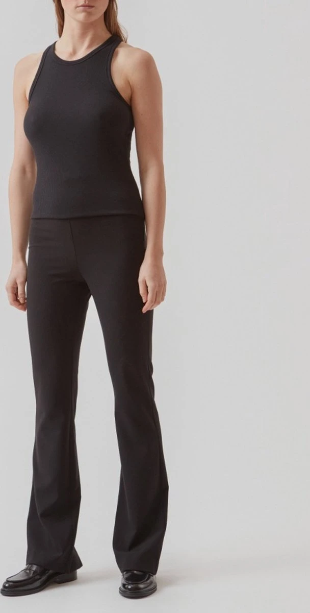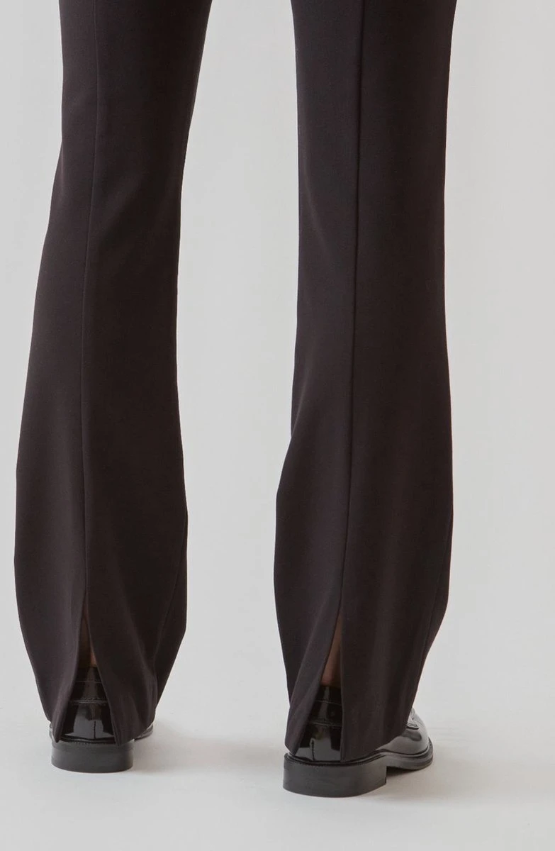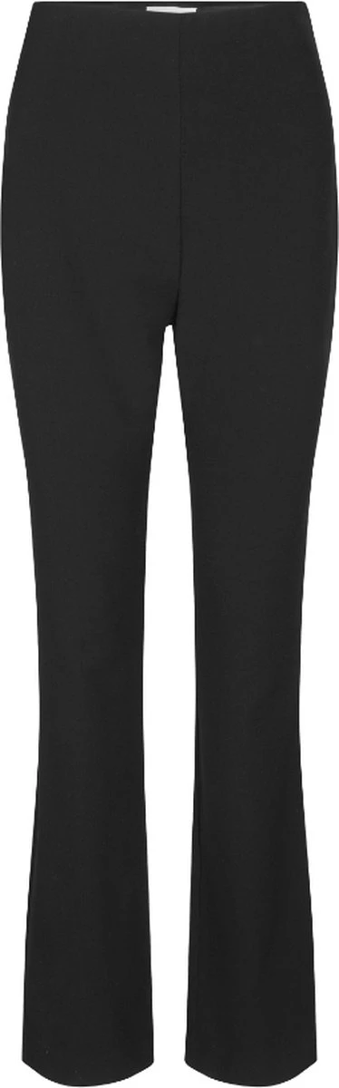 Mooie zwarte flared pantalon van het merk Modstrom. De aansluitende pantalon met flared pijpen heeft een verborgen ritssluiting aan één kant en splitjes aan de achterzijde. De zwarte broek Anker heeft decoratieve paspelzakken op de achterkant en ingenaaide plooien.